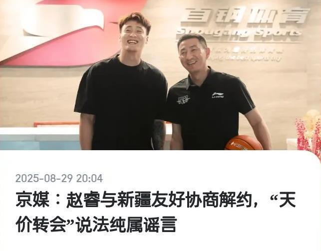 那么北京媒体是怎么说的呢,新疆队和赵是睿友好解约,“天价转会”说法纯属造谣。