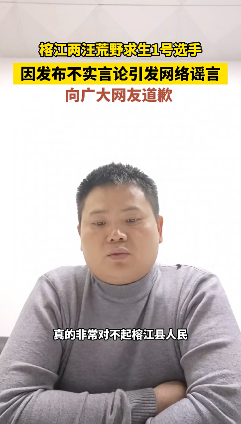 同日,该视频号还发布了榕江两汪荒野求生1号选手“野乘风”的道歉声明。他说,此前因在群聊中发布“安全员骚扰女选手” “违规投喂选手”等不实言论,引发了网络谣言,向广大网友致歉,也表示“真的非常对不起榕江县人民”。